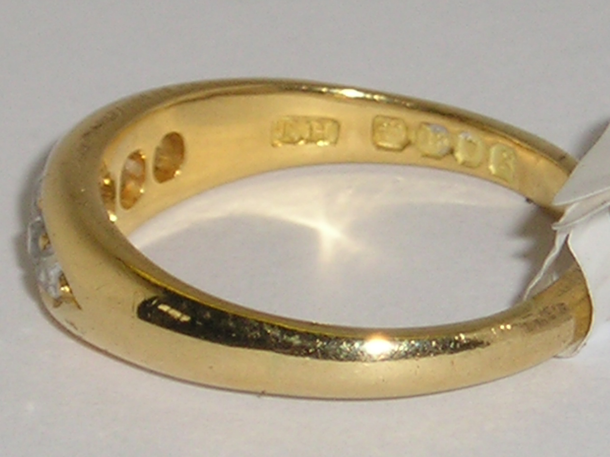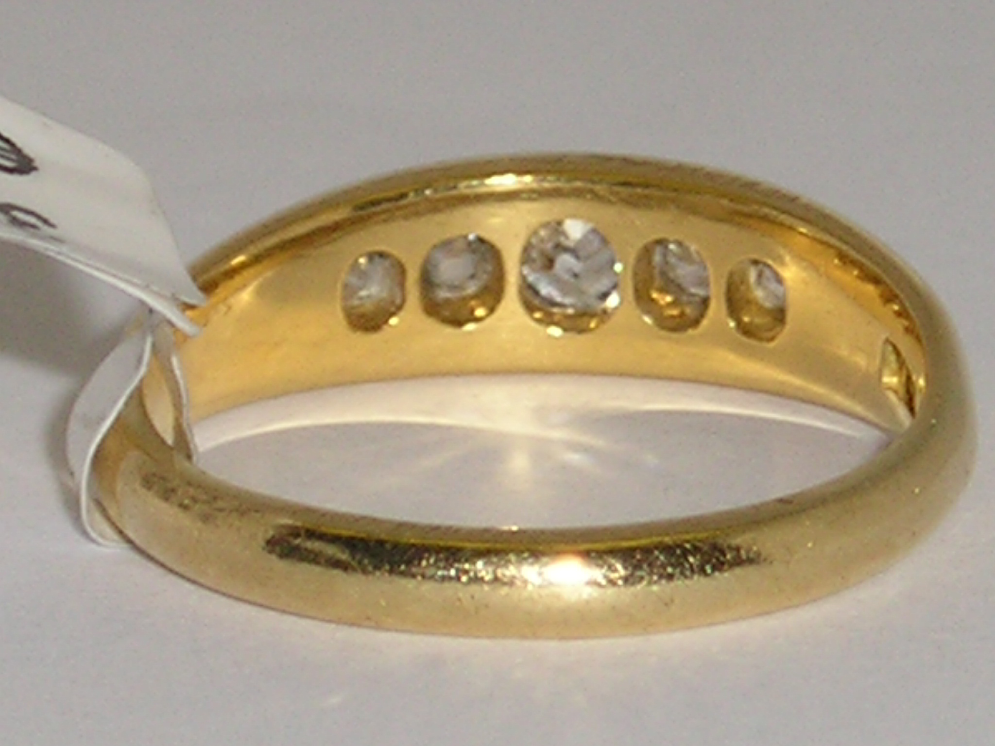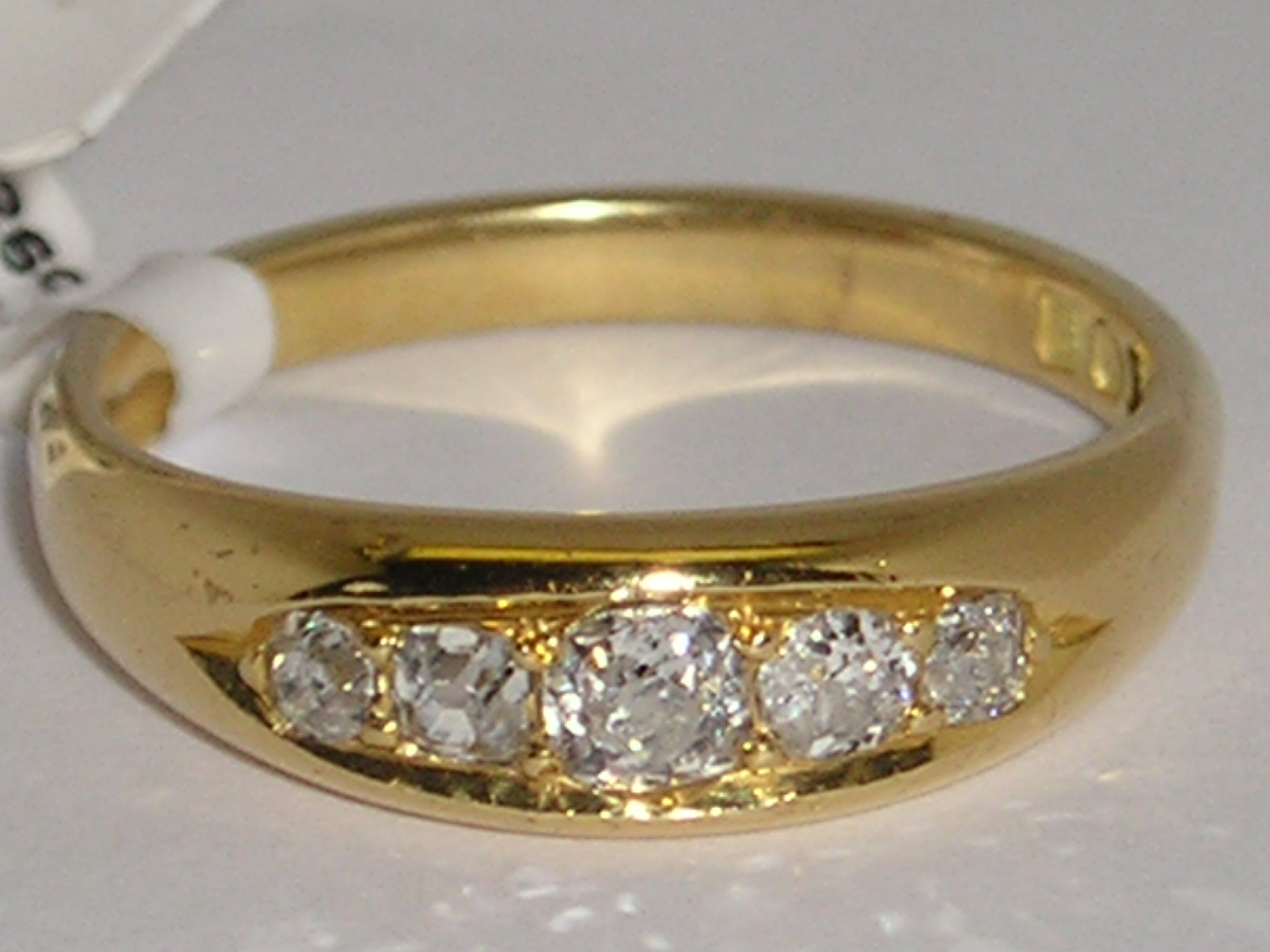 Occasion: Antieke 18 karaats masieve rijring met 6 natuurlijke roos geslepen diamanten.