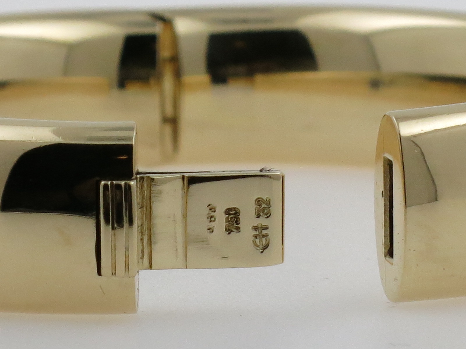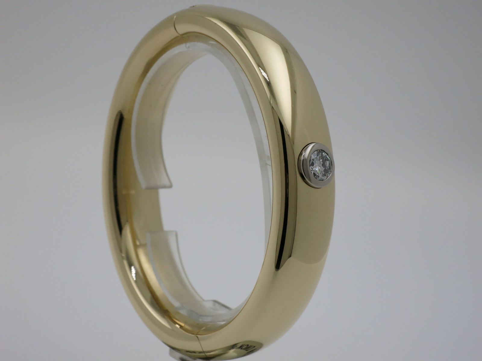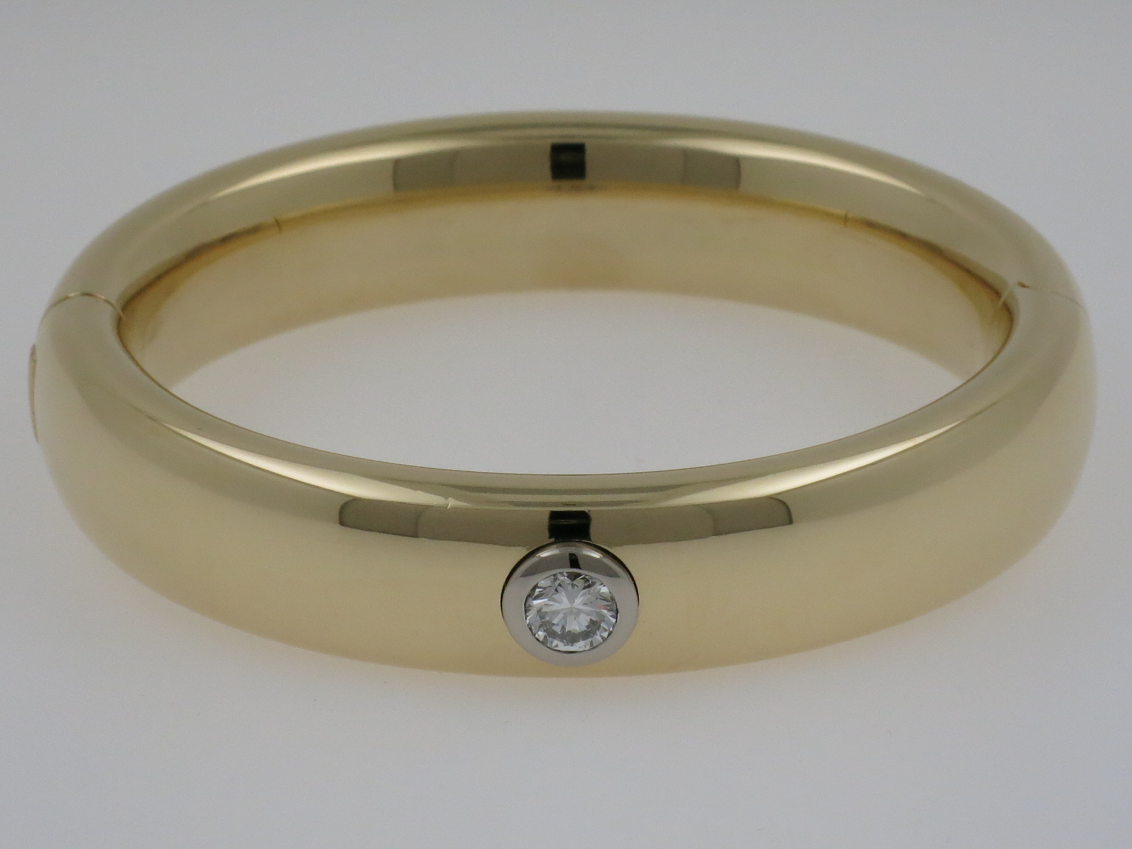 occasion: 18K (750) gold rigid braclet with 1 diamonds 0,80ct. F/VVS1. (inner site 55x46mm. wristsize.) €. 7.500,00