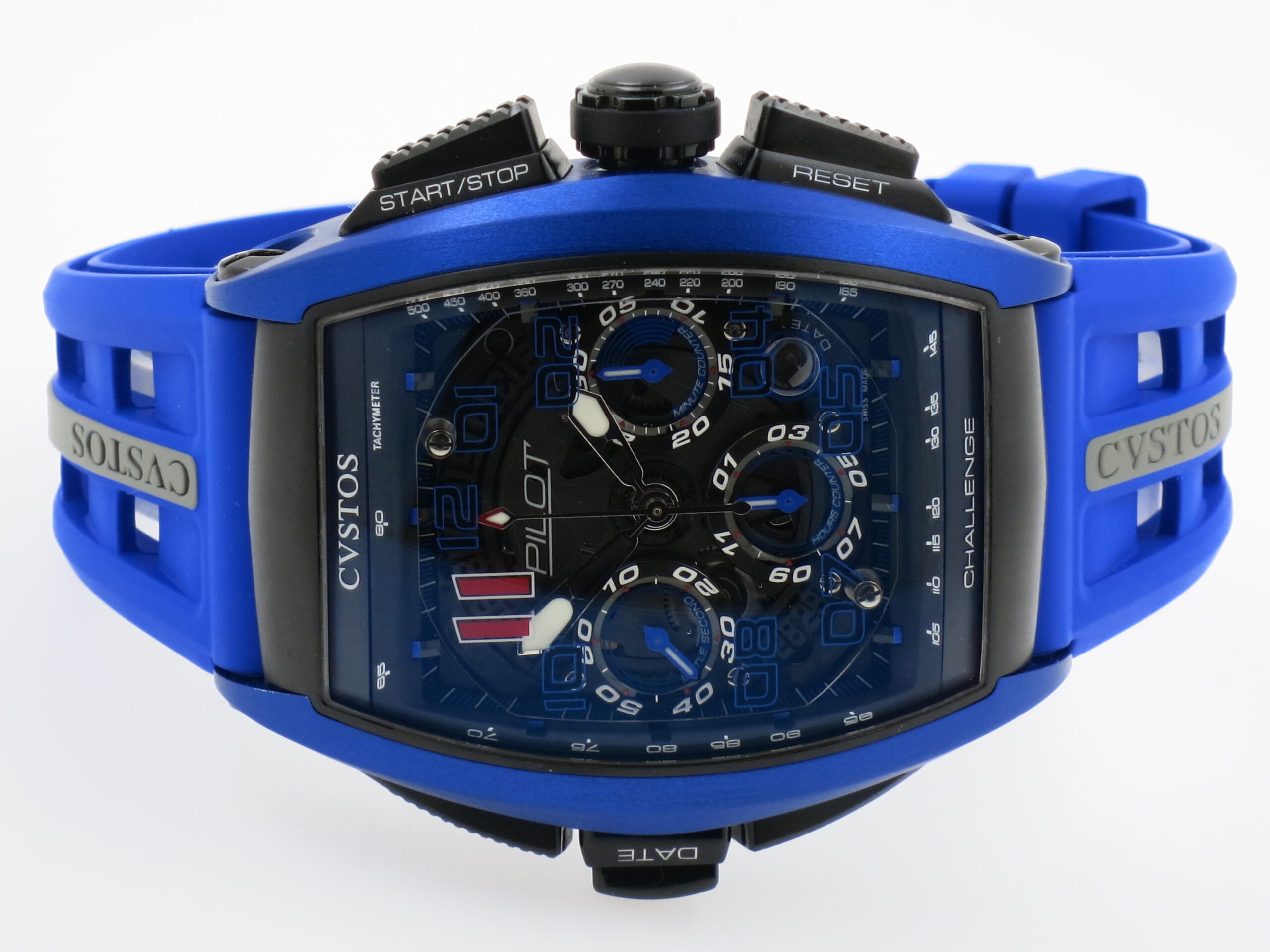 CVSTOS “Challenge PILOT Chronograph” Blue ergal case. New, onworn!