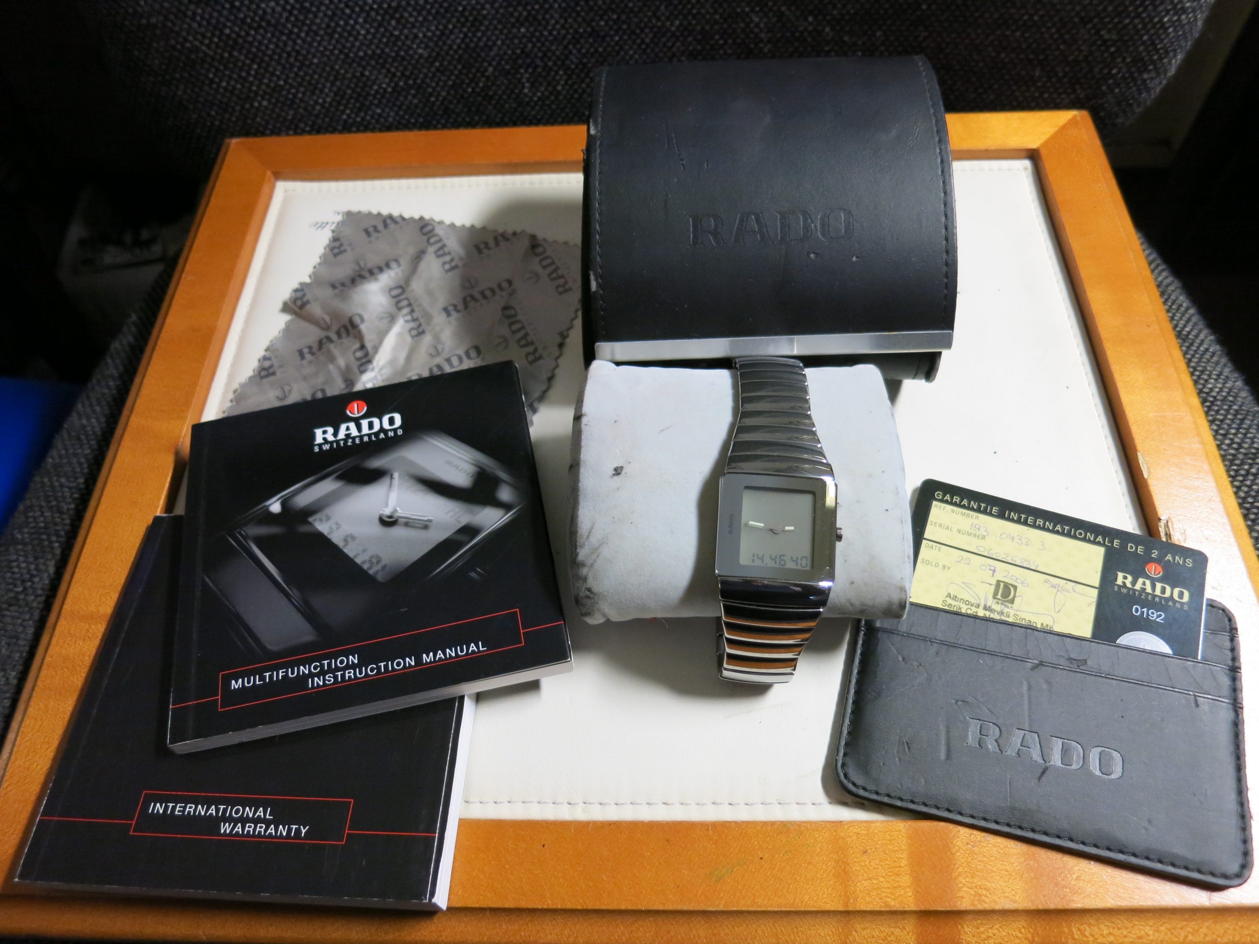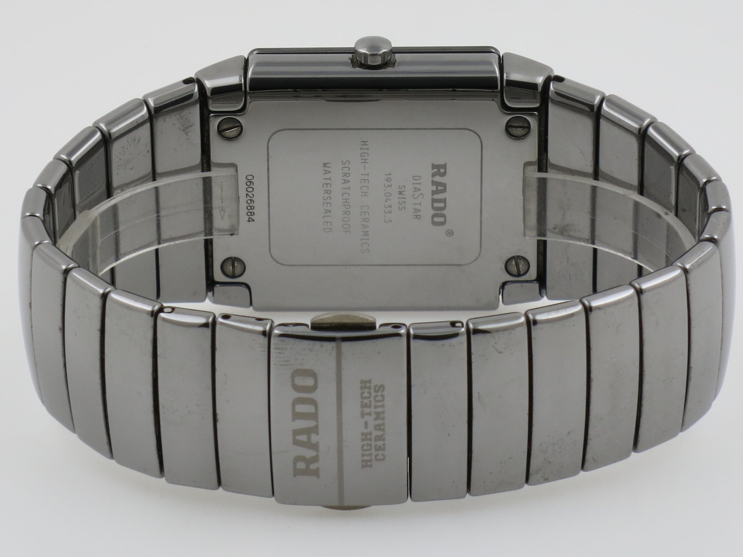 RADO "DiaStar Sintra Mulfifunction" ref. 193.0433.3 Grey ceramic case 31x38mm. with sapphire glass. Grey color dial. Quartz movement, caliber ETA 988.332 with analog: time and digital, time, gmt, chrono, date, timer and alarm. Ceremic bracelet with titan claps. Incl. original box (poor) and all papers year 2006. :istprice new €. 1.650,00. now €. 775,00