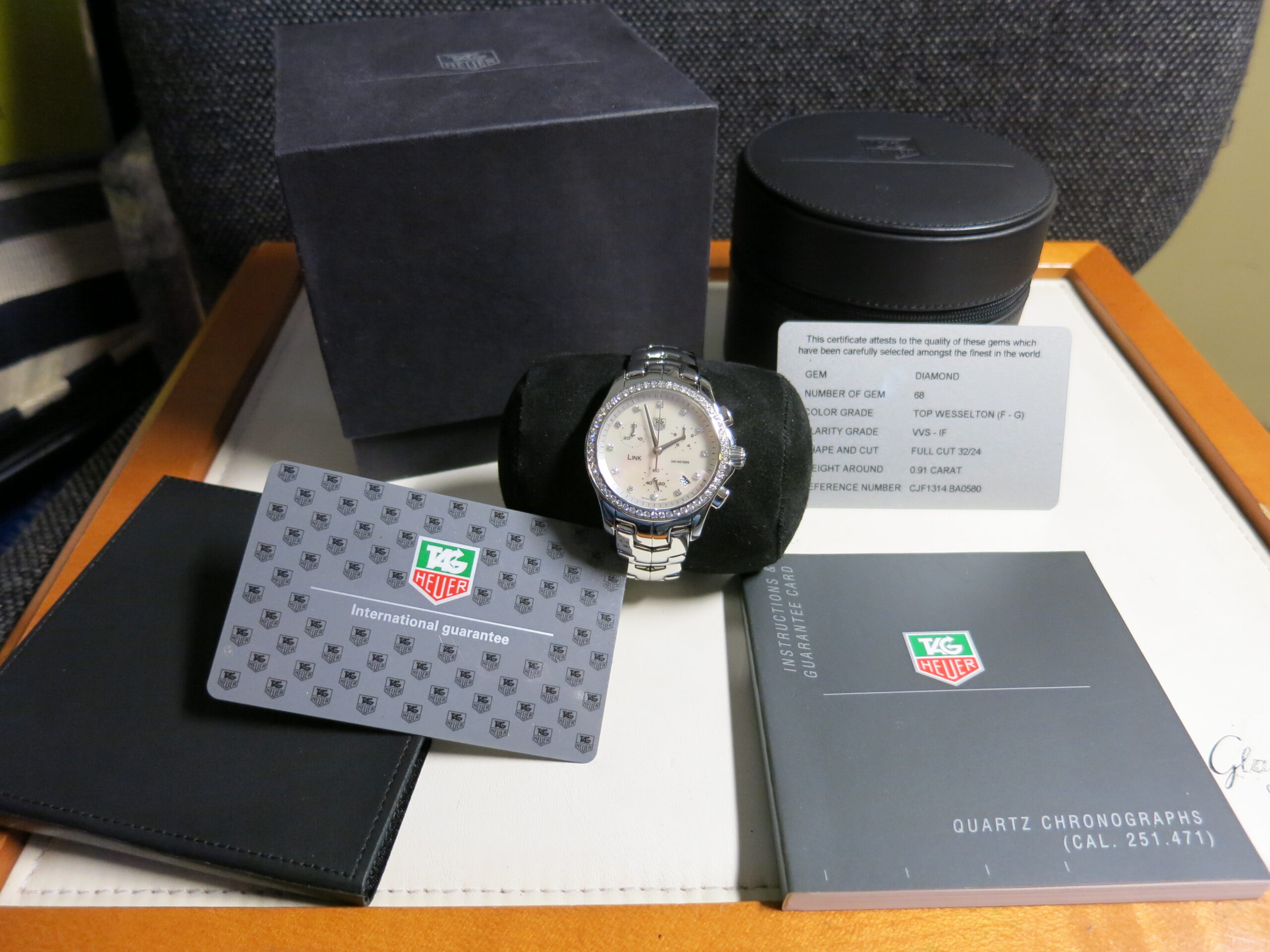 TAG Heuer “Link Lady Diamonds Chronograph” original 0,91crt. TW/VVS diamonds