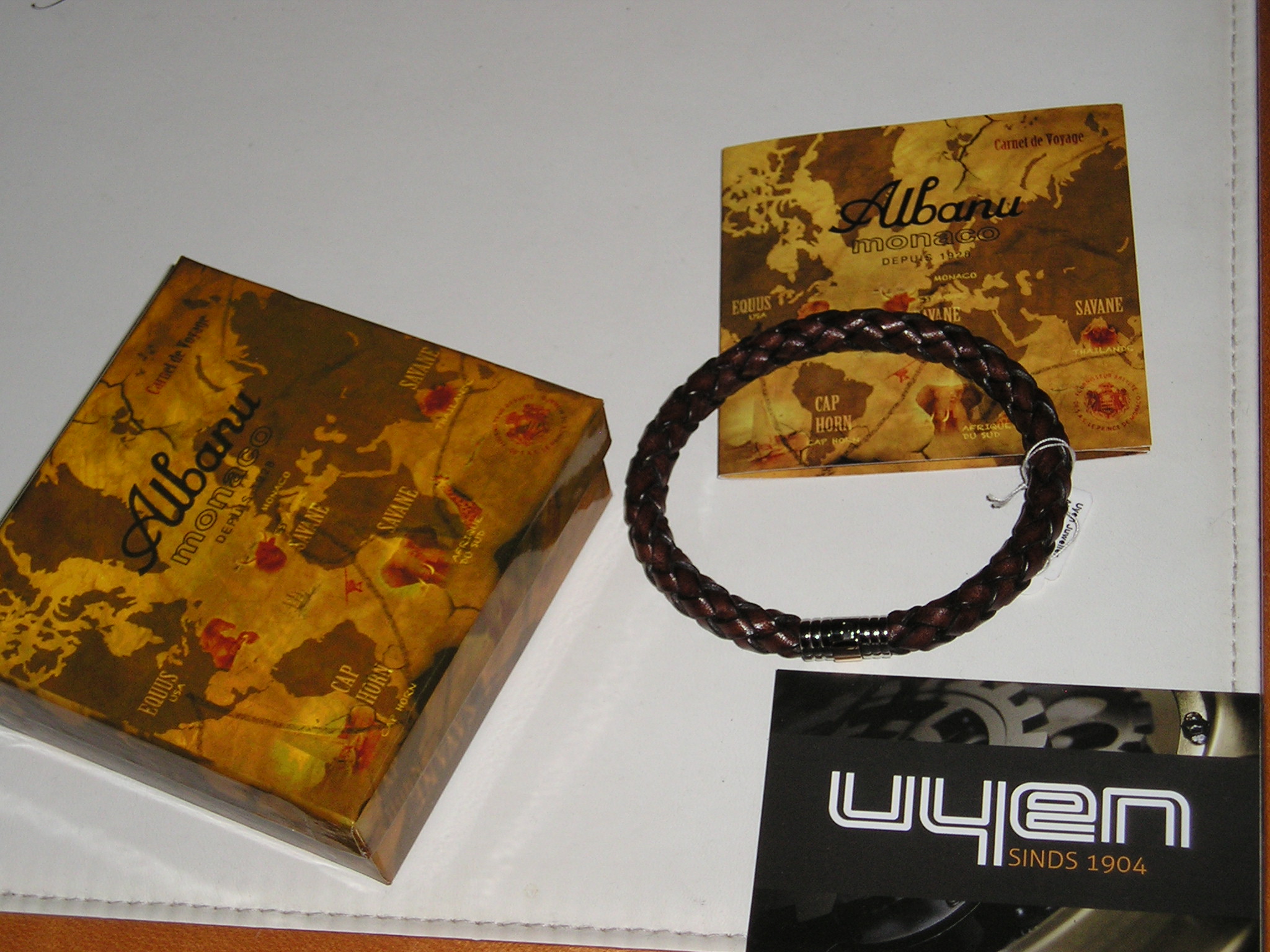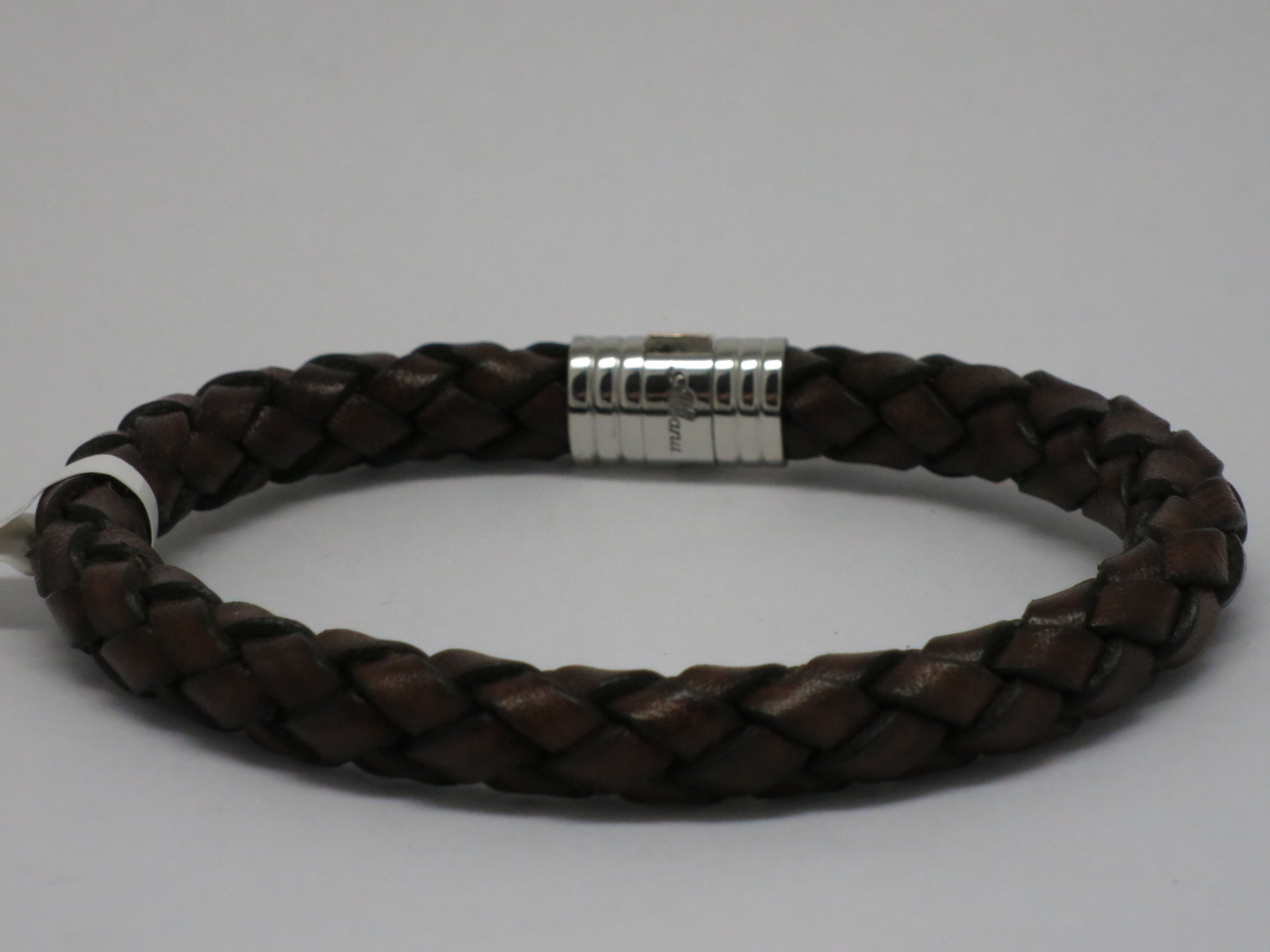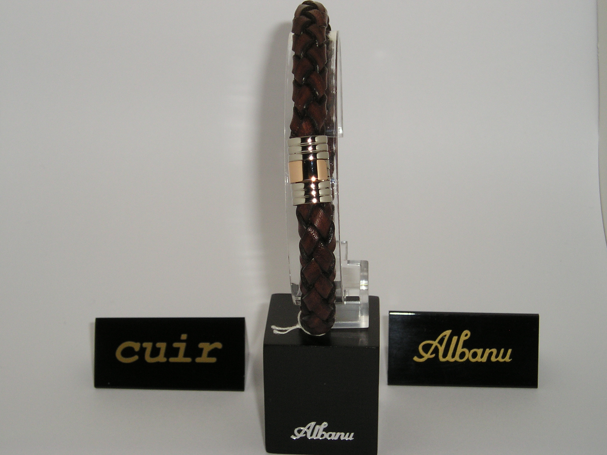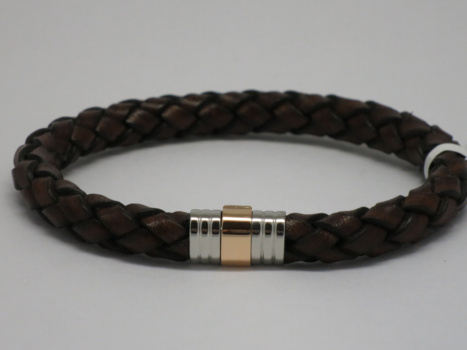 Albanu Monaco, bruin rond gevlochten leder armband met rosé goud/stalen sluiting. Incl. org. verpakking en certificaat. €. 485,00