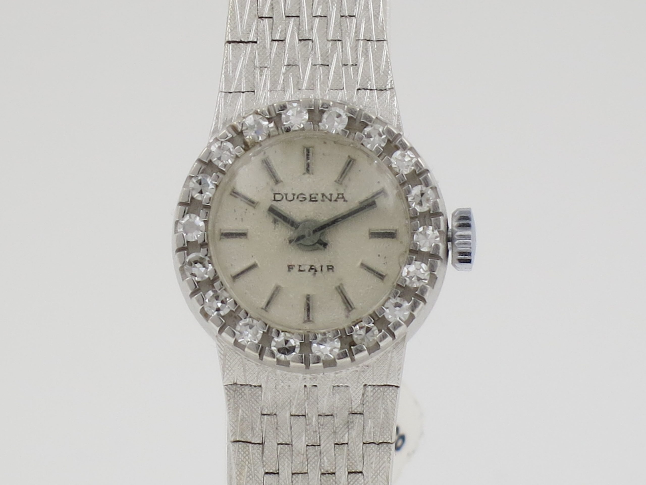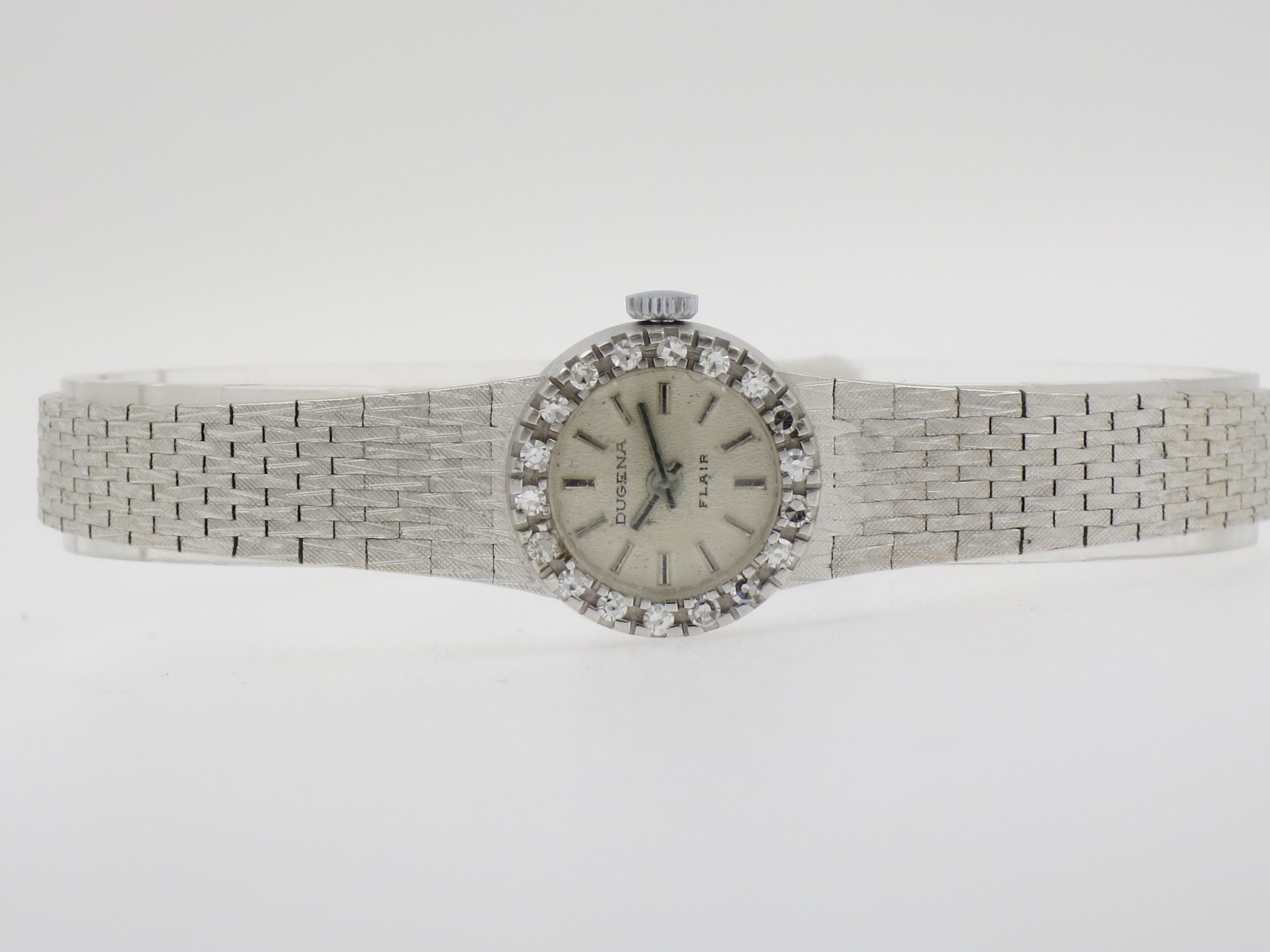 DUGENA Swiss “Dresss watch” 14K (585) white gold with diamonds bezel